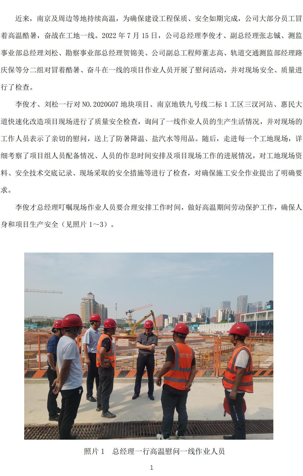 公司領(lǐng)導慰問一線員工并進行安全、質(zhì)量檢查簡報